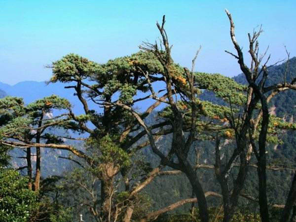 華南五針松屬松科松屬五針松組,是松科中最原始、最古老的一族,為我國特有樹種,1999年被確定為國家Ⅱ級重點保護野生植物,主要分布在廣東、廣西、湖南、貴州海拔700米—1600米的亞熱帶山地。到了冬天,為了適應懸崖峭壁的嚴酷環境,華南五針松會分泌出一種白色防寒物質,成為與眾不同的“藍松”,有時甚至呈現出光彩奪目的粉藍色。