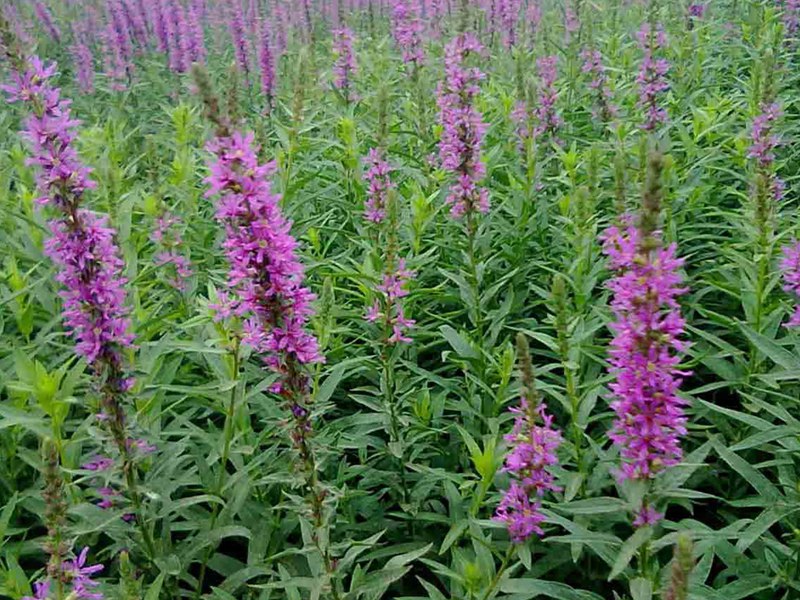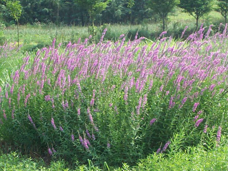 千屈菜又叫水枝柳、水柳、對葉蓮等,多年水生宿根草本植物,植株高約1米,直立生長,主桿上有許多分枝,葉子對生,披針形。葉子長4~6cm,寬1cm左右。總狀花絮長在最上面,長約30cm,花朵簇生。喜歡溫暖濕潤陽光充足的環境,在我國南方和北方地區都有野生的,生長在沼澤、湖畔、池塘等淺水地區。它耐寒性強,在山東、河南、北京等地均可自然越冬,霜降以后地面部分枯死,地下部分進入泥土休眠,在淺水的河邊和低洼潮濕的地方生長態勢最好,對土壤的要求不嚴。