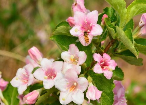 錦帶花是忍冬科、錦帶花屬的一種植物,植株可高達3米,樹型呈圓筒狀,葉片邊緣有鋸齒,花期4-6月,多生長在拔100-1400米的雜木林中。